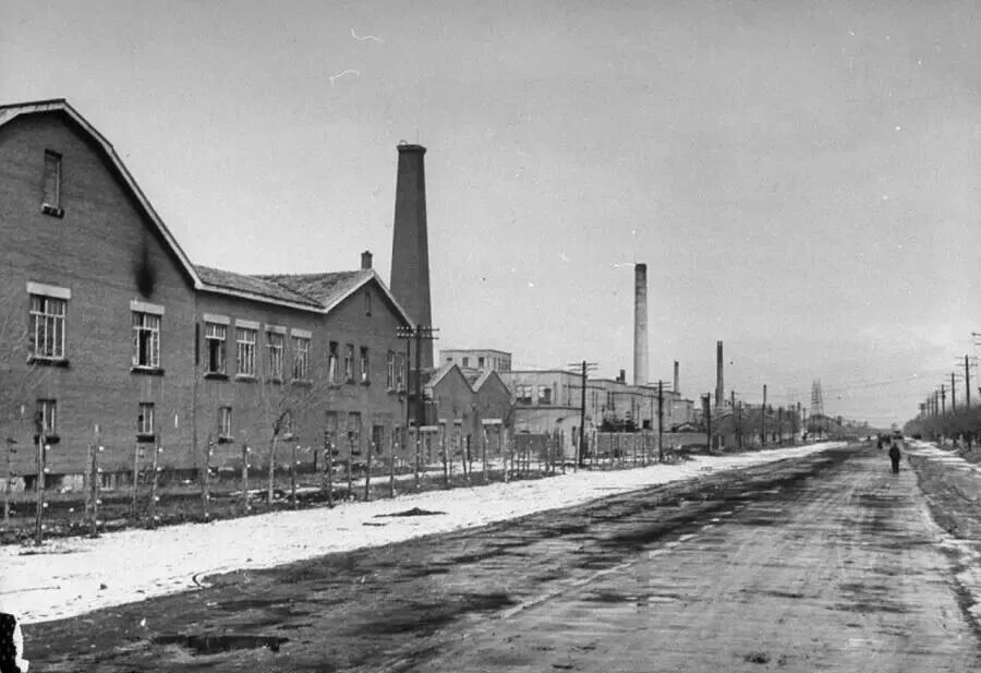 这是当时东北的工业区,一座座厂房,烟囱林立。街上静悄悄的见不到一个人。苏军占领东北后,搬空了所有的工厂,这些工厂的烟囱再也不会冒烟了。