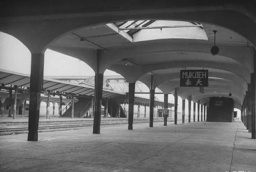 沈阳火车上,宽大的风雨棚下,悬挂着“奉天”站牌。当时的沈阳叫奉天。诺大的火车站上,见不到一列火车和一个人,静悄悄的。