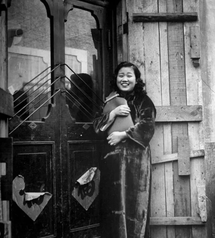 一名年轻女子站在门前,她怀抱一个巨大的热水袋取暖。这名女子其实是一名妓女,正在门口笑着招揽过往的苏军士兵。她也是因生活所迫,不得已而为之。