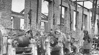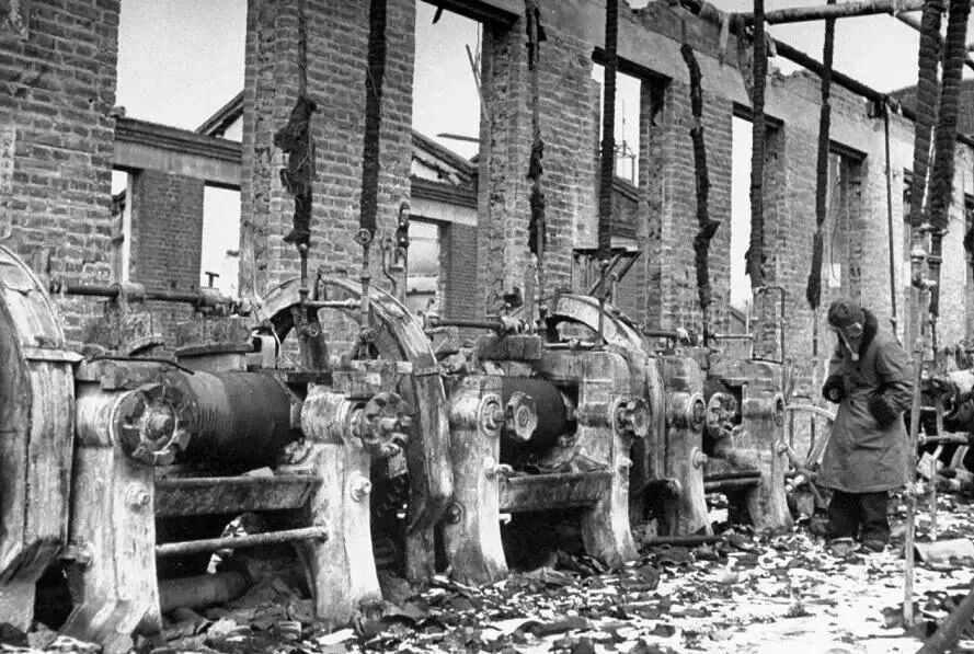 在一家大型工厂里,厂房和车间里的机器遭到毁坏,地上满是积雪。苏军不仅拆走了工厂里的机床、发电机等关键设备,甚至连铁路上的火车头、车厢都不放过。